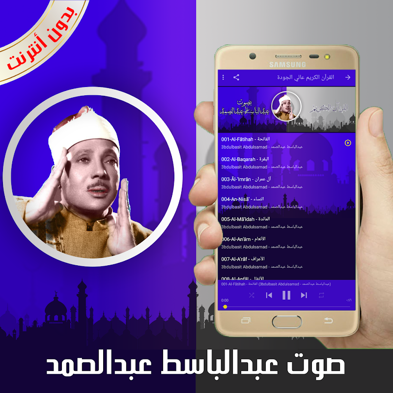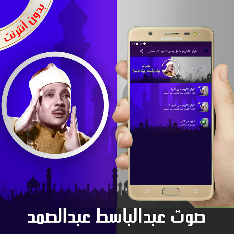 अब्दुल बासित अब्दुल समद की आवाज़ में पवित्र कुरान आवेदन आपको पवित्र क़ुरआन के सभी सुरों को अपने मोबाइल फोन या टैबलेट के माध्यम से एक कार्यक्रम के माध्यम से आसानी से सुनने की अनुमति देता है जिसमें पवित्र क़ुरआन के सभी सुर शामिल हैं। एंड्रॉइड फोन के लिए स्टोर पर मुफ्त और उपलब्ध है। ताकि आप जहां चाहें शेख अब्दुल बासित अब्दुल समद की आवाज के साथ पवित्र कुरान का पाठ करने का आनंद ले सकें।