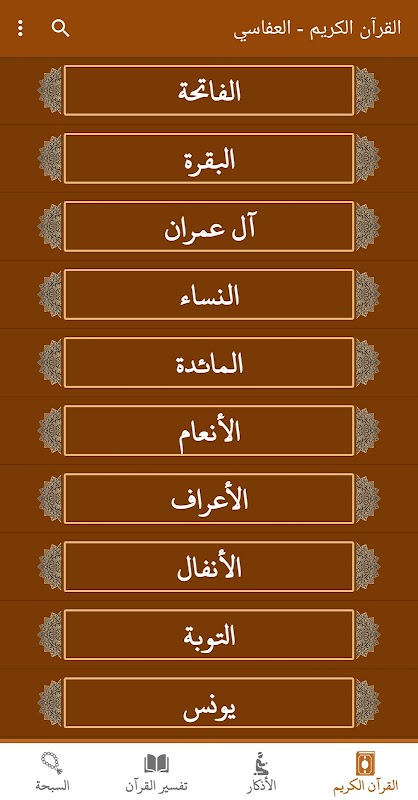 एप्लिकेशन डाउनलोड करने के बाद, आप शेख मिश्री अल-अफसी की आवाज के साथ नोबल कुरान के सूरह को सुन सकते हैं और एक ही समय में मुफ्त में, कभी भी और कहीं भी आसानी से सूरह पढ़ सकते हैं।