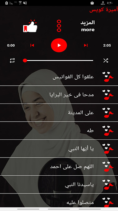 تطبيق أناشيد أميرة كويس الذي يحتوي على باقة من الأناشيد المختارة بعناية لتناسب جميع الاذواق.