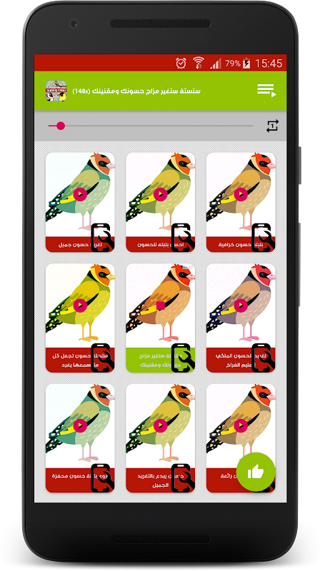 تطبيق نغمات طائر الحسون يحتوي على اروع بتبتات و ستستات حسون لتحفيز وتهييج المقنين و أعذب تغريدات الحسون.
