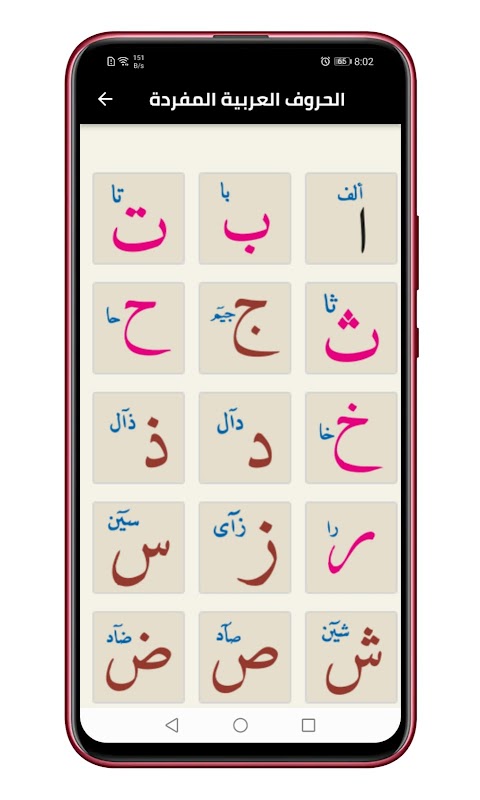एक इंटरैक्टिव शैक्षिक कार्यक्रम जिसका उद्देश्य अरबी अक्षरों को पढ़ाना और अरबी अक्षरों को सही ढंग से लिखना सिखाना है