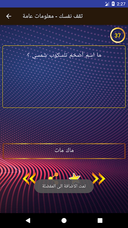 - يمكنك اضافة الاسئلة والاجوبة التي تعجبك الى المفضلة ليسهل عليك الوصول اليها سريعا