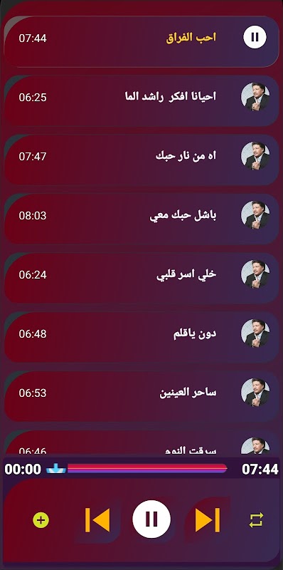 एक उच्च परिभाषा आवाज के साथ एक आवेदन में इंटरनेट के बिना कलाकार अबू बक्र सलेम के सभी गाने