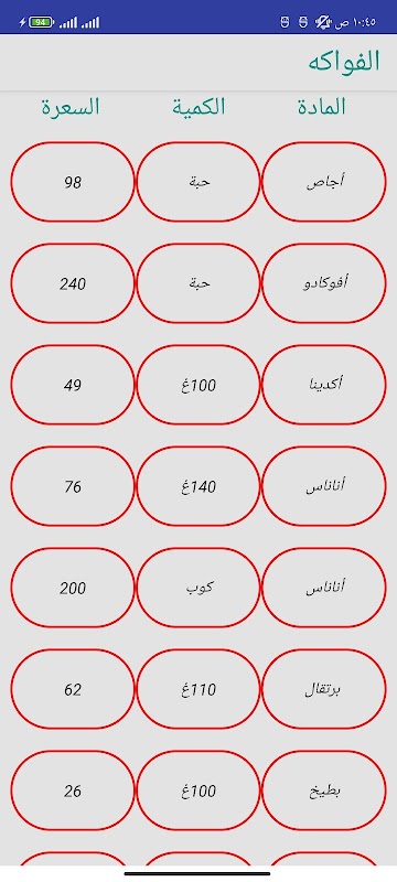 - सभी उपलब्ध खाद्य पदार्थों के मास्टर टेबल।