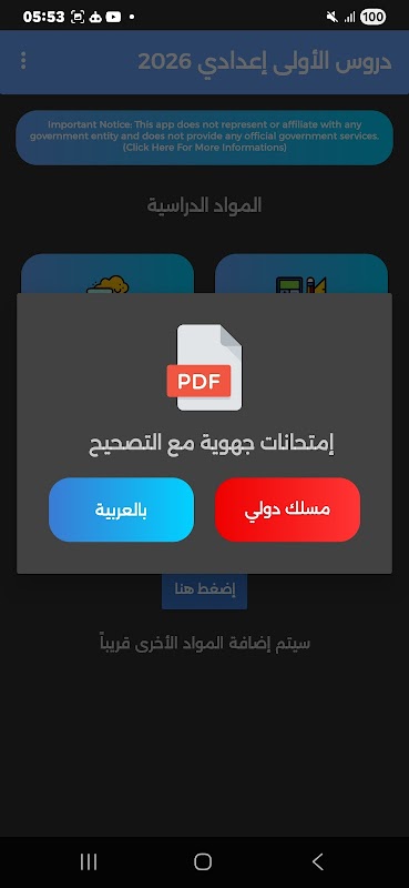 महत्वपूर्ण सूचना: यह ऐप सरकार का हिस्सा नहीं है और आधिकारिक सरकारी सेवाएँ प्रदान नहीं करता है, कृपया ध्यान दें: सरकारी जानकारी का एक स्पष्ट स्रोत https://telmidtice.men.gov.ma और https://moutamadris.ma है। अस्वीकरण: यह ऐप किसी भी सरकारी संगठन से संबद्ध नहीं है, और यह कोई आधिकारिक सरकारी सेवाएँ या जानकारी प्रदान नहीं करता है, ऐप के भीतर प्रदान की गई सभी सामग्री केवल शैक्षिक उद्देश्यों के लिए है और सरकारी निकायों के साथ किसी भी औपचारिक संबंध के बिना स्वतंत्र रूप से विकसित की गई है। यह ऐप मोरक्को के शिक्षा मंत्रालय की पिछली परीक्षाओं सहित शैक्षिक सामग्री प्रदान करता है। ये परीक्षाएँ https://moutamadris.ma पर ऑनलाइन निःशुल्क उपलब्ध हैं
