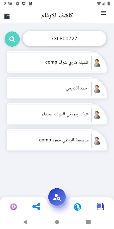 ابحث عن اي رقم او اسم موبايل وسيظهر لك بإسم من مسجل هذا الرقم وجميع التفاصيل وابحث مع اكبر