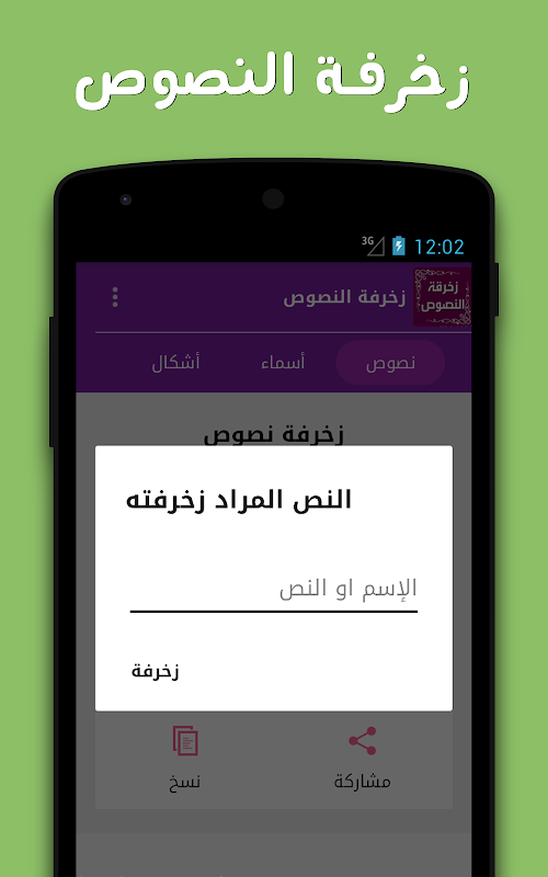 تطبيق بسيط لزخرفة الكتابة على الجوال والنصوص والأسماء , من خلال هذا التطبيق يمكنك ان تحصل على 9 أشكال من الزخارف الاحترافية والجديدة والمميزة للنصوص التي لاتتواجد في التطبيقات الأخرى