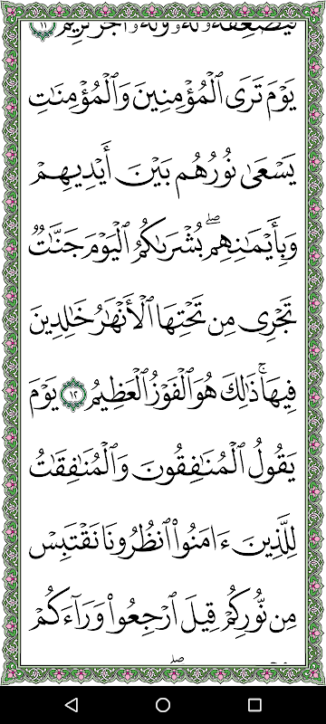बुजुर्गों और दृष्टिबाधित लोगों के लिए विज्ञापनों के बिना पढ़ने की सुविधा के लिए बड़ी लिखावट में सूरह अल-हदीद