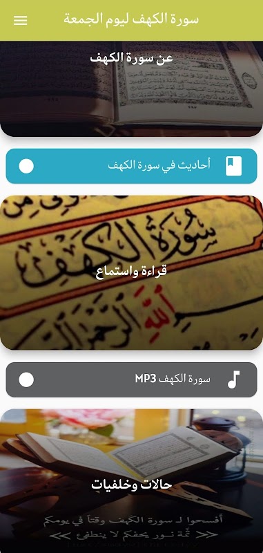 अब शुक्रवार के लिए सूरत अल-काहफ के आवेदन में, यह आपको खोज की परेशानी के बिना सूरत अल-काफ के बारे में सारी जानकारी प्रदान करता है
