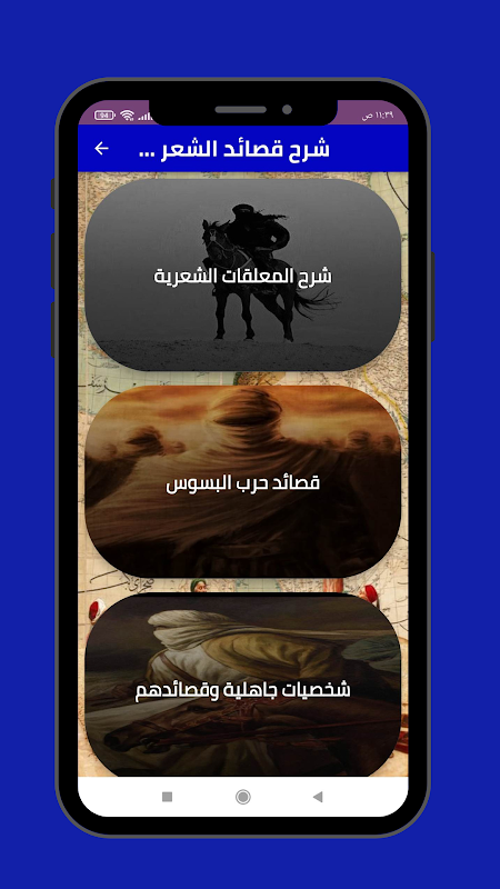 पूर्व-इस्लामिक कविता स्पष्टीकरण आवेदन में कई कवियों के लिए पूर्व-इस्लामिक कविताएँ शामिल हैं