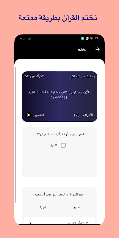 "खूबसूरत आवाज के साथ इंटरनेट के बिना मुहम्मद ऑडियो रिमाइंडर पर शांति हो" एप्लिकेशन पवित्र कुरान को आसानी से और सहजता से पूरा करने के लिए आपका आदर्श साथी है। एप्लिकेशन आपको कुरान को पूरा पढ़ने के लिए प्रेरित करने में मदद करता है, क्योंकि यह आपको जारी रखने के लिए प्रेरित करने के लिए दैनिक चुनौतियां और लक्ष्य प्रस्तुत करता है। सकारात्मक प्रतिस्पर्धा की भावना को बढ़ाने के लिए आप अपनी प्रगति को अपने दोस्तों के साथ भी साझा कर सकते हैं और उनके साथ बातचीत कर सकते हैं।