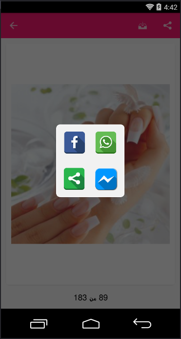 إمكانية مشاركة الصورة من التطبيق إلى أحد مواقع التواصل الاجتماعي كالفيسبوك أو إرسالها إلى أحد الأصدقاء كمسج على المسنجر.