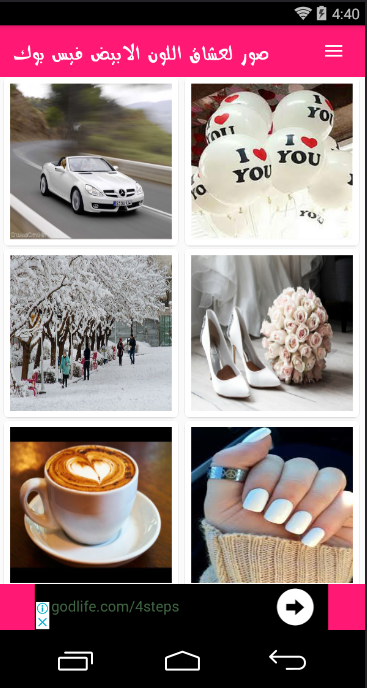 يحتوي تطبيق صور فيسبوك لعشاق اللون الأبيض على مجموعة كبيرة من صور فيس بوك باللون الابيض الرائع والمميزة لعشاق اللون الأبيض مثل صور فيس بوك للقطط الأليفة باللون الابيض وصور فيسبوك 2018 للفناجين البيضاء الخاصة بالقهوة وصور فيس بوك 2018 للاثاث الابيض و صور فيس بوك 2018 ل،وصور فيس بوك الطبيعة ولون الثلج باللون الابيض ،وصور فيس باللون الابيض عن المقتنيات والاكسسورات ،وصور فيس بوك باللون الابيض عن البرائة والطهارة والاخلاص والطيبة والمشاعر الرقيقة وأشياء أخرى عديدة ومميزة، كما يتضمن تطبيق صور فيسبوك لعشاق اللون الأبيض على صور معبرة ومؤثرة عن مواضييع متنوعة وهذه الصور الموجودة في تطبيق صور فيسبوك لعشاق اللون الأبيض صممت خصيصا لاستخدامها على مواقع التواصل الاجتماعي كالفيس بوك حيث بإمكانكم استخدام هذه الصور المعبرة على صفحاتكم الشخصية على الفيسبوك وانستجرام وتويتر أو على المجموعات المنشأة على الفيسبوك وكافة وسائل التواصل الاجتماعي.