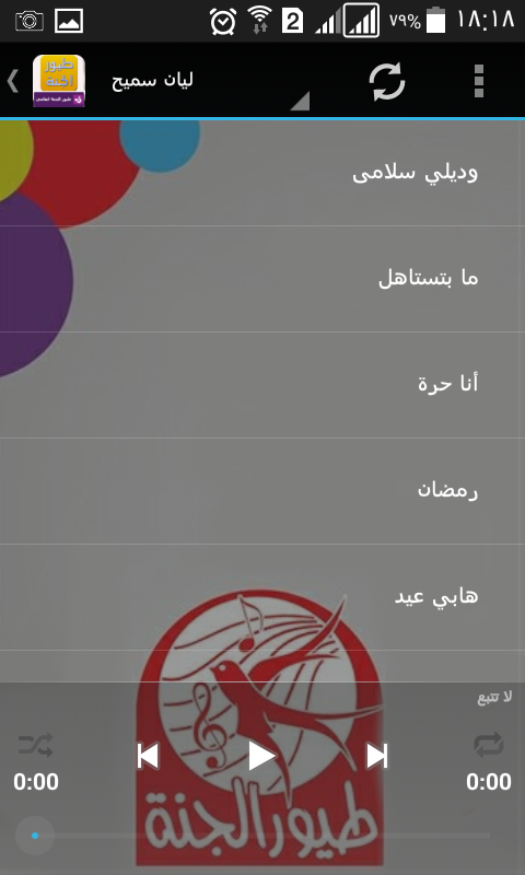نقدم لكم تطبيق طيور الجنة انغامى الذى يشمل كل اغانى واناشيد قناة طيور الجنة الفضائية ويمكنكم من خلال التطبيق الاستماع لكل الاناشيد مجانا وبدون اى صعوبات كما يمكنكم استخدام الاغانى والاناشيد التى يحتويها التطبيق كنغمة رنين وكنغمة استيقاظ للمنبة وغيرها من الامكانيات .