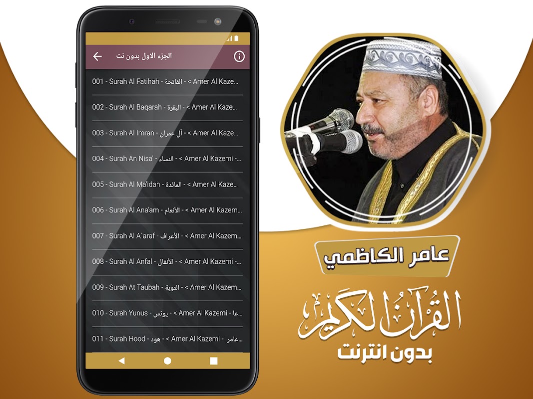 Amer पवित्र कुरान के आवेदन में पाठक आमेर अल-काज़मी की आवाज़ शामिल है, जो इंटरनेट के बिना कुरान को सुन रहा है और कुरान के मुफ्त पाठ के लिए इस एप्लिकेशन की विशेषता है।