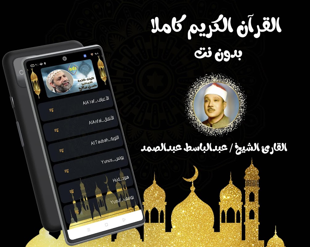 पाठक शेख अब्दुल बासित अब्दुल समद की आवाज़ में नेट के बिना सुगंधित सस्वर पाठ का आनंद लें