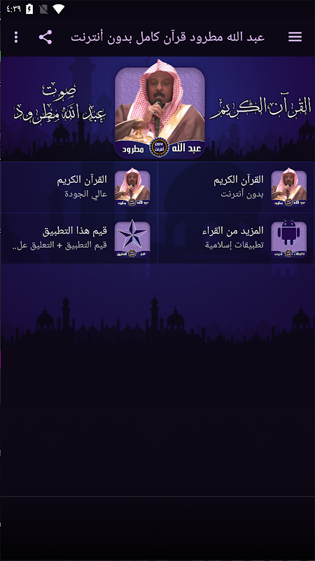अब्दुल्ला मटरोड की आवाज में नोबल कुरआन का आवेदन