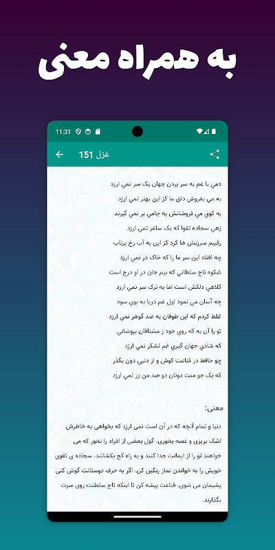 इस कार्यक्रम के साथ, आप हाफ़िज़ की कविताएँ हमेशा अपने पास रख सकते हैं।