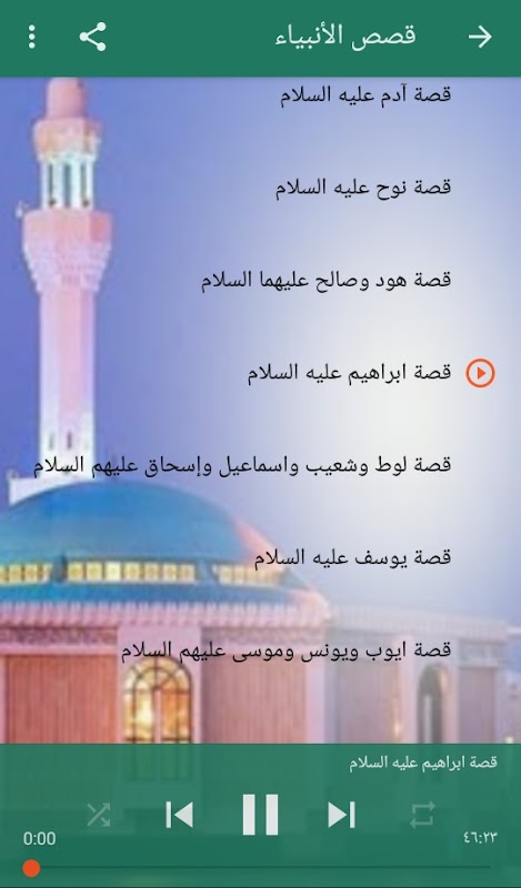 يحتوي التطبيق على دروس الشيخ نبيل العوضي لقصص الانبياء ك قصة ابراهيم عليه السلام