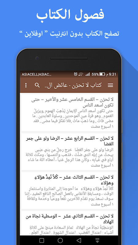 - يتم تحديث محتويات الكتاب بعد تحميل التطبيق مباشرة ثم لا يحتاج الى اتصال انترنيت لمتابعة القراءة.