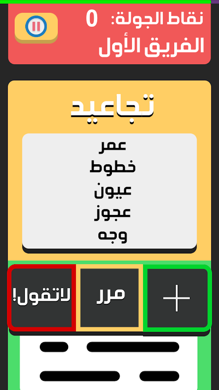 لعبة قول بس لاتقول عبارة عن لعبة كلمات تتكون من فريقين, كل فريق