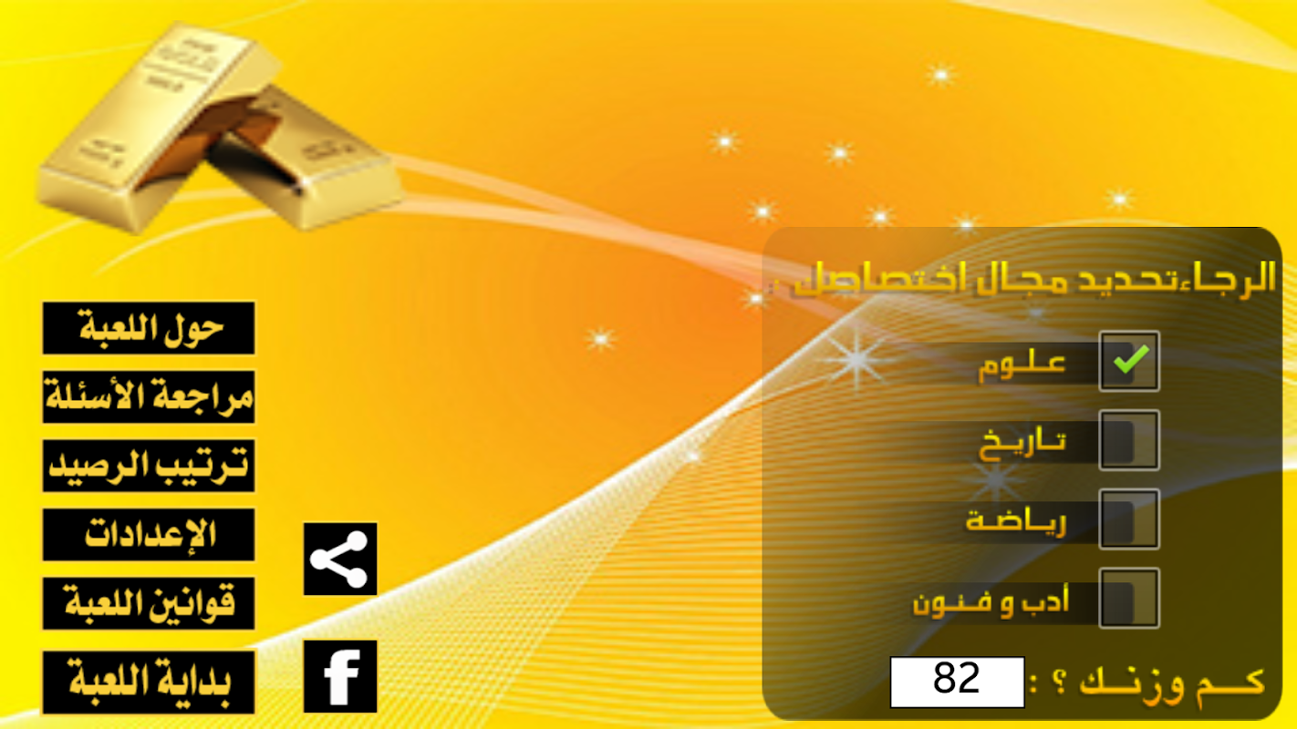 قم بتحميل اللعبة تسلى واكتسب معلومات مع وزنك دهب.