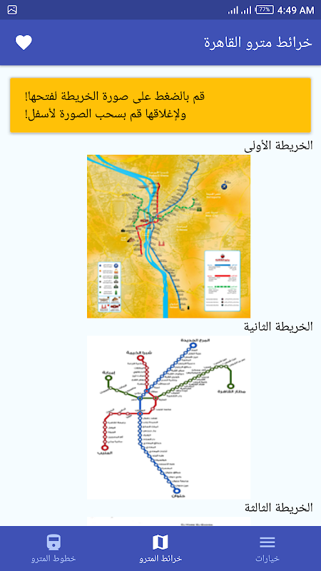 एक साधारण आवेदन है कि सभी रास्तों काहिरा मेट्रो लाइनों हमेशा और अपने स्मार्टफोन पर किसी भी समय होता है।