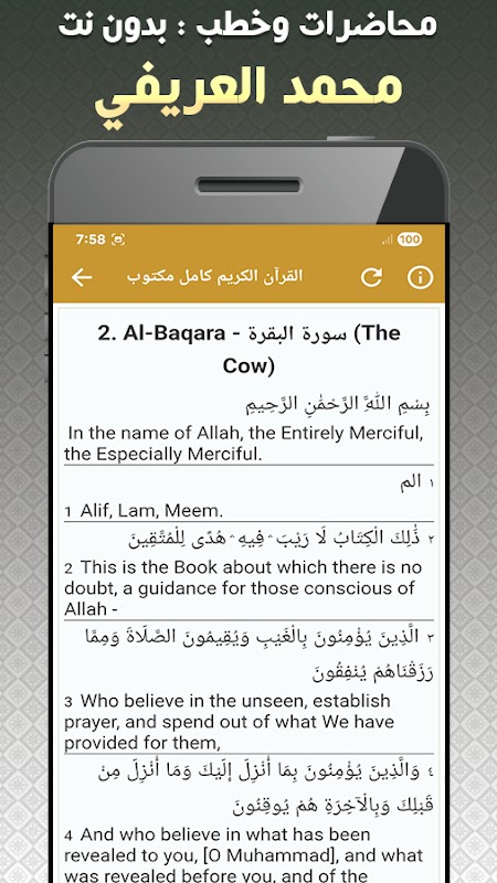 इस ऐप में शेख मुहम्मद अल-अरीफ़ी द्वारा प्रस्तुत ऑफ़लाइन व्याख्यान और धर्मोपदेश शामिल हैं, जिनमें 1,000 से ज़्यादा उच्च-गुणवत्ता वाले व्याख्यान शामिल हैं।