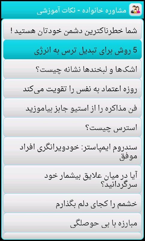 این برنامه شامل دو قسمت نکات آموزشی ومشاور می باشد.