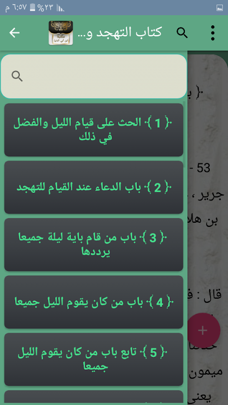 ◉ त्वरित प्रदर्शन और उनके बीच संक्रमण के लिए पुस्तक के सभी अध्यायों वाला एक साइड मेनू।