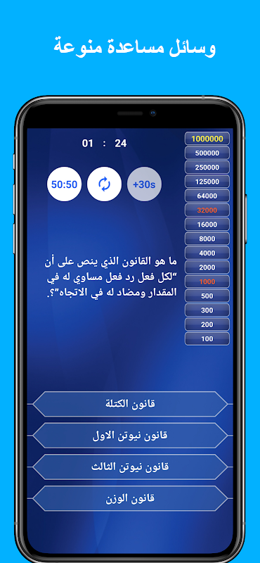 नवीनतम संस्करण के साथ इस्लामिया में एक मिलियन कौन जीतेगा, इसका आवेदन, हमने इसे अंतःक्रियात्मक रूप से विकसित किया है जो वास्तविक प्रतिस्पर्धा का अनुकरण करता है, और पृष्ठभूमि और रंगों के साथ-साथ बटन और एनीमेशन के मामले में एक नया डिजाइन, कई अद्भुत और दिलचस्प विशेषताएं हैं और अपडेट जो आपको परिवार या दोस्तों के साथ प्रतियोगिताओं का माहौल देंगे।