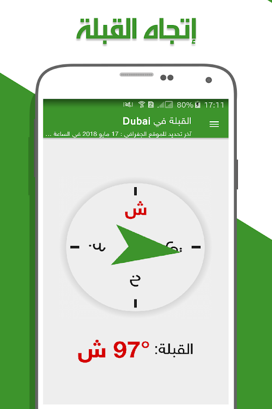 - تحديد اتجاة القبلة بصورة صحيحة دقيقة مع تصميم رائع و واضح للبوصلة.