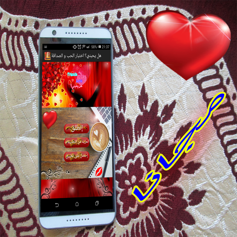 تطبيق " هل يحبني ؟ كلمات حب اختبار الحب و الصداقة " هوتطبيق دردشة للرجال و النساء والفتيات والبنات وأولاد صغار وكبار هو تطبيق العشاق و الغرام الرائع و المشهور عالميا فهو أشهر ألعاب الحب و اختبارات الحب و الصدقات التي تعطيك نسبة التوافق بينك وبين حبيب أو عشيقك ويعطيك الفرصة لتحدث مع الفتيات و للحصول على أرقام هواتف الجميلات. و هداالاختبار أو ألة الحب وكشف المحبة بين العشاق فهو بالعربية ومجانا و بدون رسوم وللبحت عن الفتيات العازبات وخلق السعادة في الحياة الزوجية.