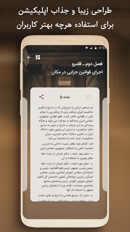 برنامه کتاب قوانین کیفری و مجازات اسلامی برای قبولی در آزمون وکالت برای شما کاربران عزیز ارائه شده است تا به مرجع کامل قانون جزا و مجازات های کیفری و حقوقی دسترسی داشته باشید.