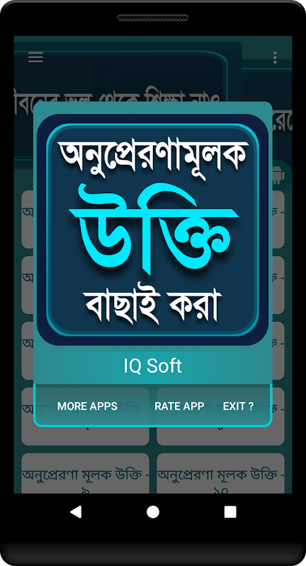 এই অ্যাপ টিতে থাকছে অনুপ্রেরণা মূলক উক্তি বা বাণী এবং এর সাথে আরও থাকছে ইসলামিক বাণী ও ইসলামিক উক্তি এবং গুণীজন দের কথা, এটি একটি ইসলামি ও অনুপ্রেরণা মূলক উক্তি ও বাণী বাংলা অ্যাপ, উক্তি বা বানী যা আমাদেরকে প্রভাবিত করে, বিখ্যাত মণীষীদের অনুপ্রেরণামুলক উক্তি বা বানী যা আমাদের বিশ্বাস বাড়াবে এবং বদলে দিতে পারে আমাদের জীবনকেও, আমরা আনুকরন ও আনুসরন করব তাদেরকে, জারা ছিল বিখ্যাত ও মহান, হুমায়ুন আহমেদের নেলসন ম্যান্ডেলার আইনস্টাইনের রবীন্দ্রনাথ ঠাকুরের হুমায়ূন আজাদ এর কাজী নজরুল ইসলাম এর এপিজে আব্দুল কালামের হযরত আলী (রাঃ) এর হেলাল হাফিজ এর বন্ধুত্ব উপদেশ মূলক অনুপ্রেরণামুলক বাণী ও উক্তি, ভালোবাসার প্রেমের উক্তি ও বাণী, প্রবাদ বাক্য জীবন বদলে দেয়া উক্তি ও বাণী।
