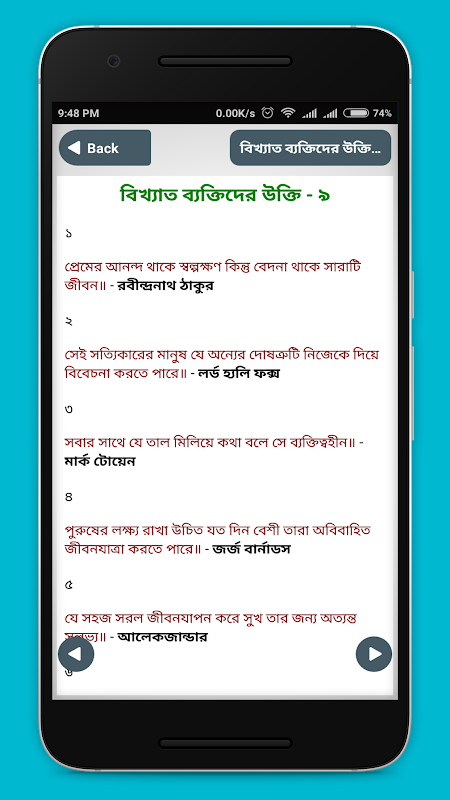 উক্তি Bani in Bengali মনিষিদের উক্তি Bangla Quotes অর্থাৎ মনিষিদের উক্তি ~ bangla bani or quotes ও বিখ্যাত ব্যাক্তিদের কিছু উক্তি - Famous Quotes নিয়েই সাজানো এই বিখ্যাত ব্যাক্তিদের উক্তি - Bangla Ukti বাংলা এপ যা আশা করি আপনাদের ভাল লাগবে। ধন্যবাদ।