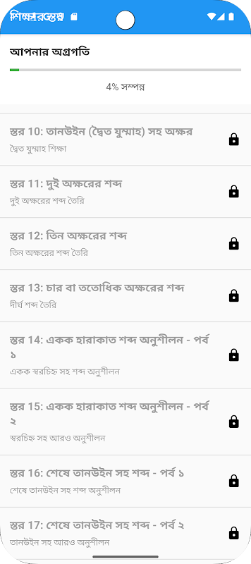 अरबी वर्णमाला की मूल बातों से प्रारंभ करके 24 स्तरों तक कवर करें: