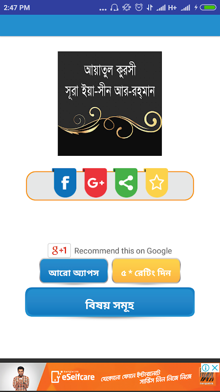 पैगंबर मुहम्मद Ayatul कुर्सी सूरा यासीन (यासीन) अर-रहमान अभ्यास हर रोज देखा। सभी मुस्लिम अभ्यास करना चाहिए इन ayat (ayetul काउच) और sunnate नबी जो अल्लाह (SWT) को पढ़ाने के रसूल (एसएम) के रूप में सूरा। पवित्र नबी हजरत मुहम्मद ने कहा कि देखा सबसे अच्छा दुआ और ज़िक्र हर मुस्लिम प्रार्थना (नमाज) के बाद इला अल्लाह मुहम्मद रसूल अल्लाह और Ayatul कुर्सी ला Illah हैं। हर मुसलमान भी ला इलाहा illallah अर्थ और बंगला अनुवाद में कुरान सीखते हैं।