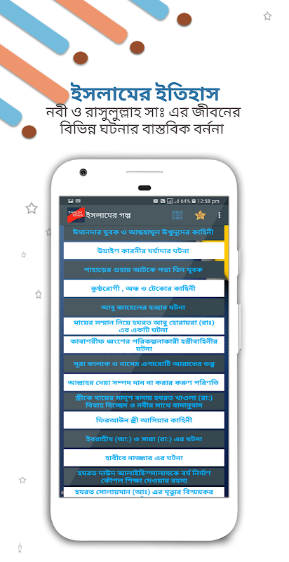আসুন পড়ি নবীদের জীবনের কাহিনি থেকে নেওয়া, সাহাবীদের গল্প, হাদিসের গল্প, শিক্ষামূলক গল্প, পীর-আওলিয়াদের কাহিনী Golpo पुस्तक বাংলা ইসলামিক বই থেকে সেরা সব ইসলামিক গল্পসমূহ নিয়ে আমাদের এই অ্যাপ টিকে সাজানো হয়েছে। নবীদের জীবনী থেকে আমরা আমাদের অনেক শিখার আছে। তাদের নিয়ে রয়েছে নানান শিক্ষামূলক গল্প। নবীর জীবনী তথা মহানবীর অনেক কাহিনী আমরা আমাদের এই বাংলা ইসলামিক এ তুলে ধরেছি क्षुधा। প্রতিটি ঘটনার শেষে পাবেন নানান শিক্ষা যা আপনার কাজে দিবে। বাংলা গল্প मुक्त (बंगाली मुक्त में Golpo) এই অ্যাপসে ইসলামি বই হিসাবে কাজ করবে বলে আমারা মনে করি। আপনারা অবসরে নানান বাংলা গল্প বই পড়ে থাকেন, সব চেয়ে ভাল আমি মনেকরি মহানবী হযরত মোহাম্মদ (সাঃ) জীবনী কারণ যার জীবনে রাসূলুল্লাহ সাথে মিলে যাবে সে অতি ভাগ্যবান এইসব হাদিসের গল্প আপনার জীবনের আমূল পরিবর্তন করে দিতে পারে। নবিদের কাহিনি গুলো আপনার মনোযোগ এমন ভাবে কেড়ে নিবে যে বুঝতেই পারবেন না কখন সময় চলে যাবে। আমাদের ইসলামিক উক্তি / ইসলামিক বানী অ্যাপটীও আপনার মোবাইল ফোন রেখে দিতে পারেন। মহানবীর বানি আমাদের নানান বিষয়ে জানতে সহায়তা করবে। চলুন দেখে নেই কি কি গল্প (Golpo बांग्ला) ইসলামিক গল্প আছে আমাদের এই ইস্লামিক গল্প অ্যাপসে -