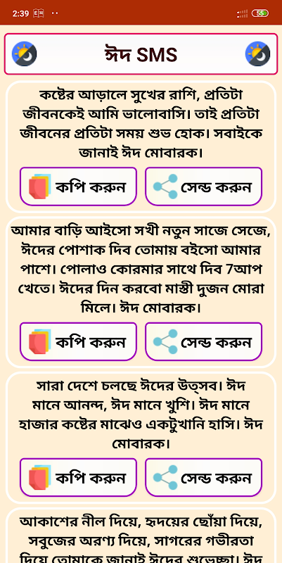 This eid sms bangla is a special app for those who seek a good app for eid sms english or bangla. So, this eid mubarak sms included best ramzan eid sms, eid special sms, eid milad un nabi sms or eid poetry sms so on.