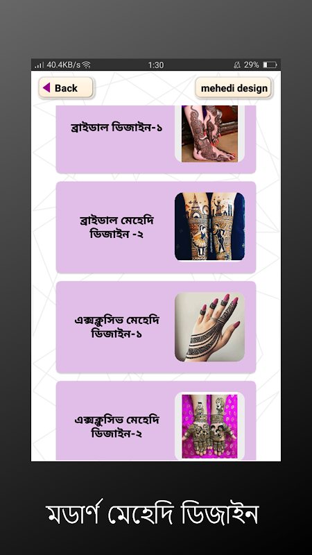 Mehedi is a common things for girls for latest fashion or trend.This app is mainly a beauty apps which is a design apps.The main purpose of this app is mehedi design,Mehedi design book ,Mehndi design ideas etc.