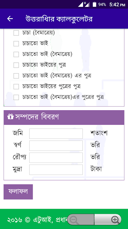 উত্তরাধিকার ক্যালকুলেটর-Uttoradhikar calculator