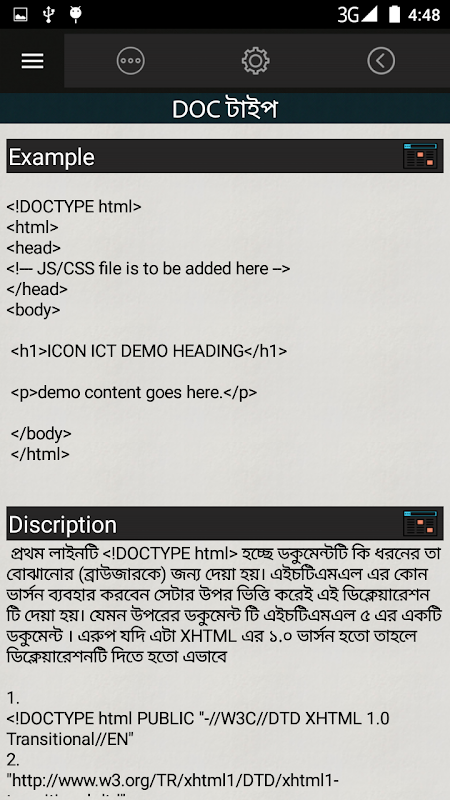 বাংলাদেশীদের জন্য ওয়েব ডিজাইন শিখা এখন সময়ের ব্যপার মাত্র। এখন সম্পূর্ন বাংলায় শিখুন ওয়েব ডিজাইন। আপনি আপনার এড্রোয়েড সম্পূর্ন বাংলা ভাষায় শিখতে পারবেন পূর্নাঙ্গ ওয়েব ডিজাইন। পাশা পাশি এইচ এস সি শিক্ষার্থী গন ও তাদের একাডেমিক আইসিটি বিষয়ের HTML কোড শিখতে পারবেন এই এপস্ টি থেকে। আমাদের এই এপস্ টিতে থাকছে HTML, CSS, JavaScript, JQuery, XML । এগুলোর ইনপুট কোড রয়েছে এবং সাথে আউটপুট দেখার সুবিধা। কোন কোড লিখলে আউটপুট রেজাল্ট কেমন পাবেন সেটাও দেখতে পারবেন এই এপস্ এর মাধ্যেমে। প্রতিটি কোডের সাথে থাকছে বাংলায় বিস্তারিত ব্যাখ্যা। সবার জন্য শুভকামনা রইল।