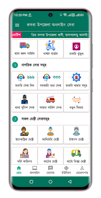 इस ऐप में आपको क़स्बा उपज़िला की सभी जानकारी और ऑनलाइन सेवाएँ मिलेंगी।