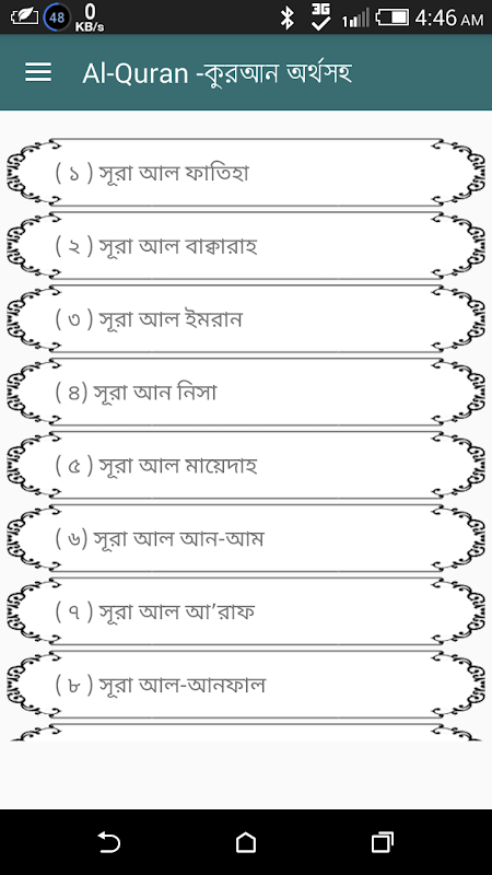 पूर्ण कुरान बांग्ला और अंग्रेजी अनुवाद उपलब्ध इस एप्लिकेशन (कुरान की बंगाली अर्थ)