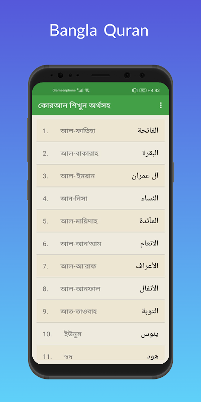 আল কুরআন আরবি, বাংলা, ইংরেজি এবং ইন্দোনেশিয়ান ভাষায় আলাদা আলাদা বাক্য শব্দ দিয়ে সাজানো আছে। খুব সহজে অর্থসহ মুখস্ত করে পাড়া যবে।