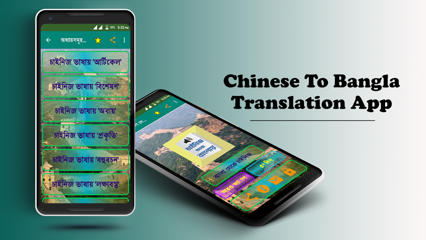 बांग्ला में चीनी भाषा सीखने का मुफ्त ऐप चीनी भाषा को आसान तरीके से सीखने के लिए एक उत्कृष्ट ऐप है। इसमें चीनी और बंगला भाषा चीनी अनुवाद के अधिक उच्चारण हैं। शुरुआती लोगों के लिए चीनी भाषा सीखने का ऐप इंटरैक्टिव पाठों के माध्यम से चीनी भाषा सिखाता है। कक्षा में बैठने की आवश्यकता नहीं है। आप इंटरएक्टिव पाठ द्वारा चीनी भाषा में बांग्ला में अच्छी बुनियादी समझ ले सकते हैं। चीन से बांग्ला भाषा के ऐप्स आपको बांग्ला चीनी अनुवाद को आसान तरीके से बांग्ला से चीनी और चीनी से बांग्ला शिक्षण पद्धति के साथ ऑडियो के साथ सिखाते हैं। इसमें महान चीन वासा बांग्ला ऐप्स विशेषताएं हैं