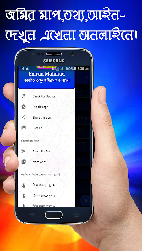 জমির খতিয়ান বের করতে আর কারো কাছে ঘুরতে হবেনা কারন এখন আপনে ঘরে বসেই অনলাইনের মাধ্যমে বের করতে পারবেন। তাছারা জমির মাপার ক্যালকুলেটর সহ জমির যাবতিয় বিষয় এই অ্যাপটিতে দেওয়া আছে। জমি সংক্রান্ত যাবতিয় তথ্য এবং জমির যত প্রকার হিসাব নিকাশ সবকিছুই এই অ্যাপসটির বিতরে পেয়ে যাবেন। তাই আর দেরি না করে এখনি ডাউনলোড করুন আমার এই জমির খতিয়ান অ্যাপসটিতে।