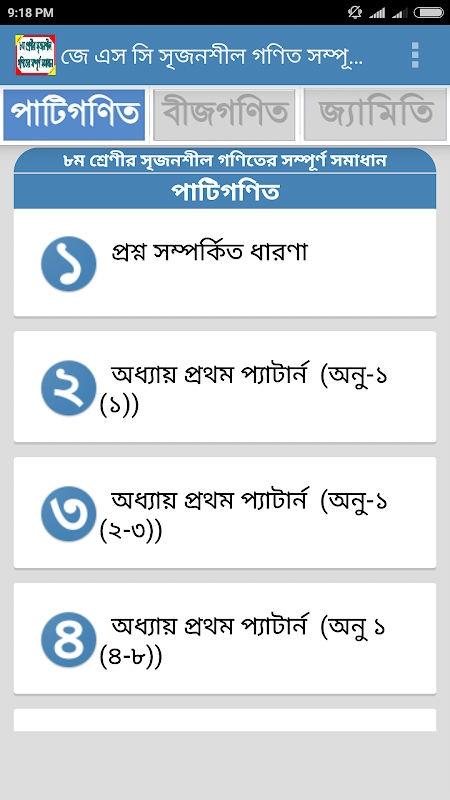 অষ্টম শ্রেনির সৃজনশীল গনিত সম্পূর্ণ সমাধান, জেএসসি পাটিগনিত, বীজগনিত ও জ্যামিতি সকল প্রশ্নের সমাধান নিয়ে আমাদের এই অ্যাপ।