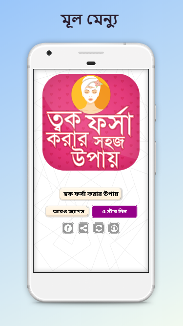 মেয়েদের রূপচর্চা বেশি পরিমানে করতে দেখা যায়। মানুষ ফর্সা হওয়ার উপার খুঁজে বেড়ান সবসময় ।ত্বকের যত্ন নেওয়ার বিষয়টা এখন খুবই স্বাভাবিক। রূপচর্চা সকলের জন্যই প্রয়োজন। ত্বক ফর্সা করার টিপস আমাদের কাছে খুবই জনপ্রিয়। ত্বক ফর্সা করার টিপস (skin care tips) নিয়ে অনেক পন্য বাজারে রয়েছে। ফর্সা হওয়ার টিপস নিয়ে আমাদের এই অ্যাপটিতে আলোচনা করা হয়েছে।